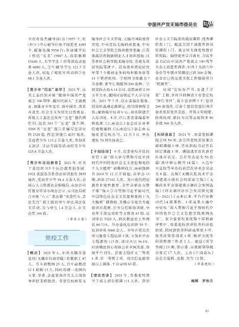 育,加强青少年党史、新中国史、改革 增设统战理论教研室、校刊部和保卫 200 余场次,百余个基层党组织和万