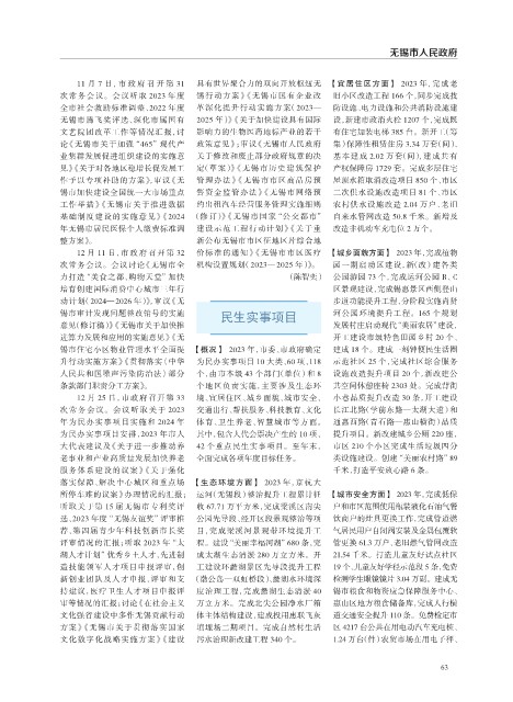 所停车难的议案》办理情况的汇报; 运河(无锡段)整治提升工程累计征 【城市安全方面】 2023 年,完成低保