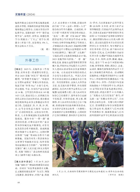 【概况】 2023 年,无锡外事工作按 友人进社区活动等社会事业领域活 运动员、媒体代表等境内外嘉宾 3 万
