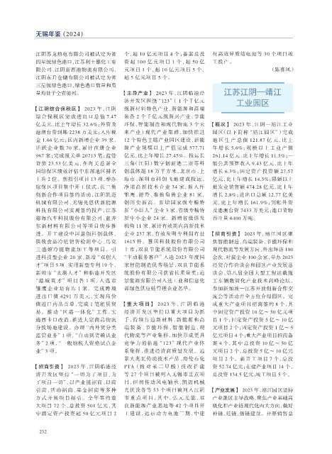量均处于全省前列。 【主导产业】 2023 年,江阴临港经 江苏江阴—靖江